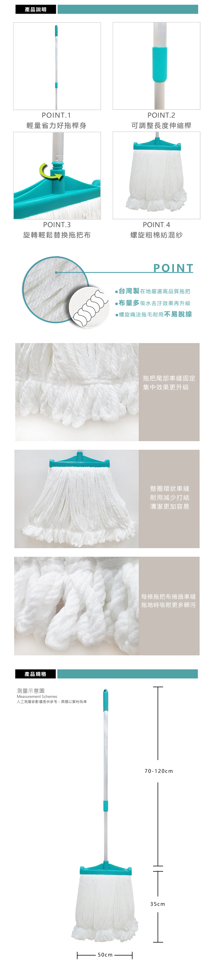 輕量伸縮強力吸水除塵布拖把-特大(1拖2替換頭)#1025110
