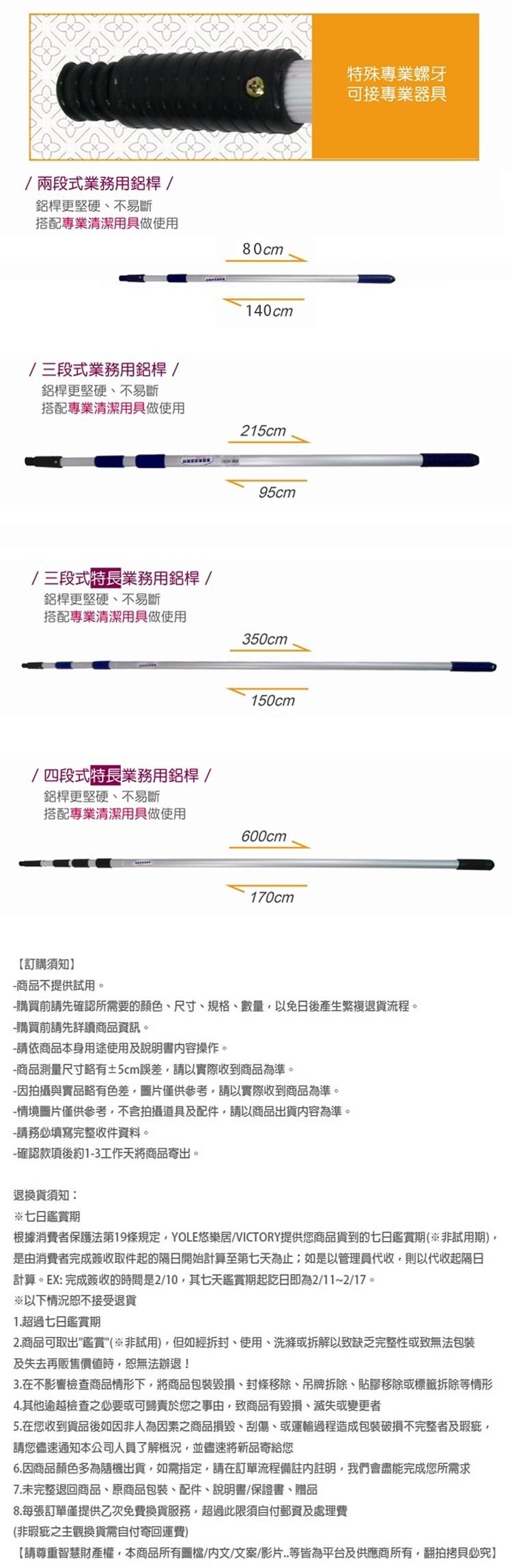 業務用高處清潔玻璃刮刀組(鋁合金架/不鏽鋼)(二段/三段/特長三段)(附5替換刮條)#1027024-7