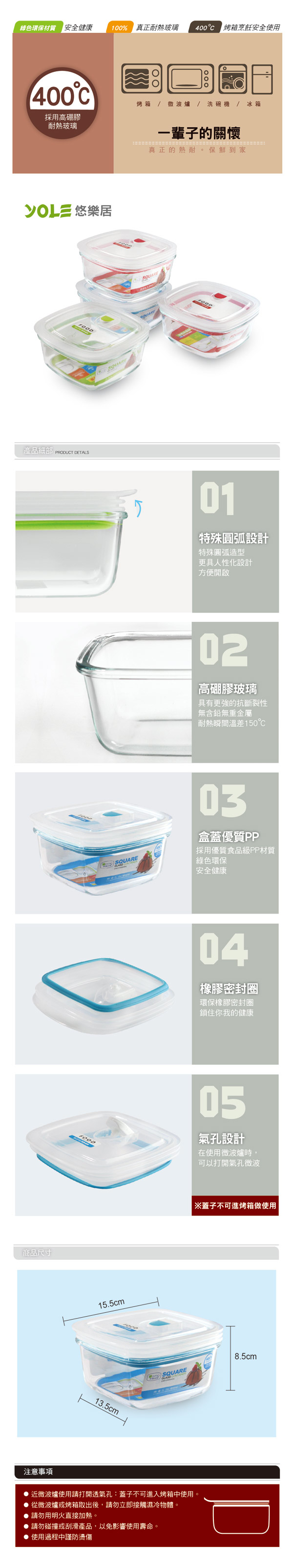 內容:氣孔微波耐熱玻璃保鮮盒-方形920ml*4入