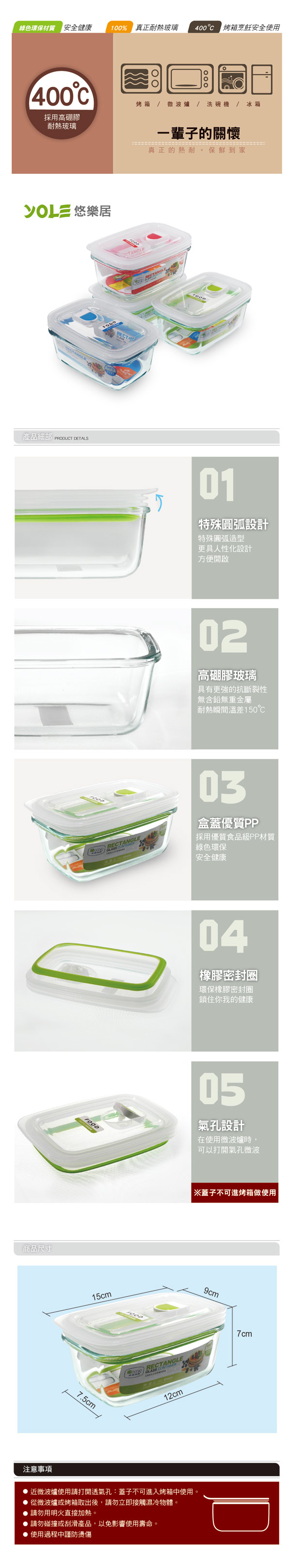 內容:氣孔微波耐熱玻璃保鮮盒-長形400ml*4入