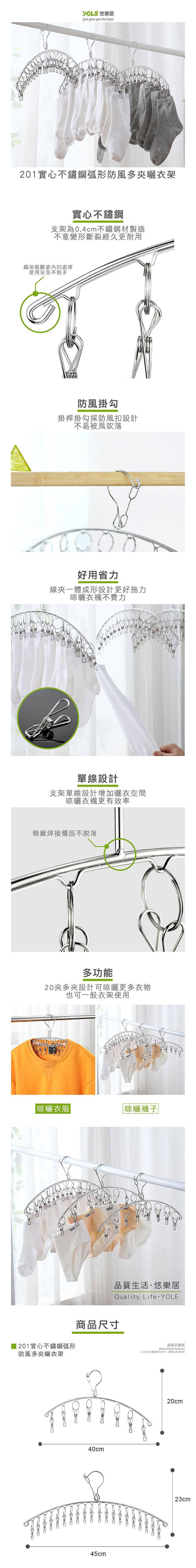內容:201實心不鏽鋼弧形防風多夾曬衣架-8夾/20夾*1組(任選一)