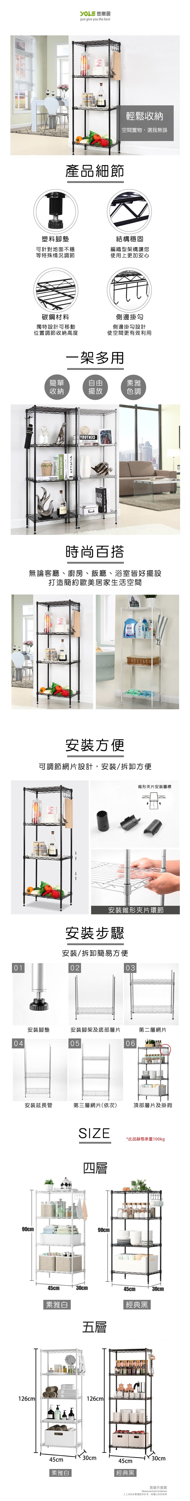 耐重金屬多層置物架網格收納架-(四層/五層)(黑色/白色)(1組)#1327060-1327061+(贈)S形鐵掛勾6入*數量有限