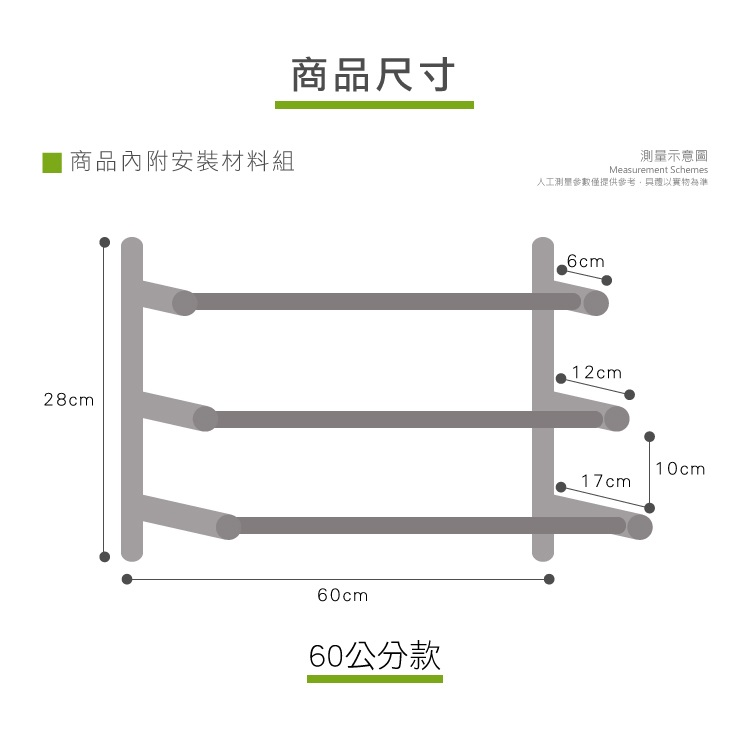 內容:304不鏽鋼免釘可打孔三層掛勾毛巾架40cm/60cm*1組